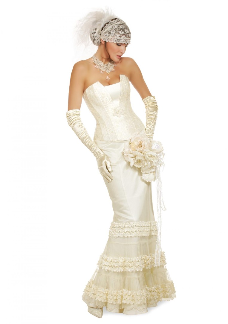 Abbildung: Rock R11 aus Satin ecru, Tüllrock TR10 aus Tüll ecru, Korsett M60 aus Brokat ecru