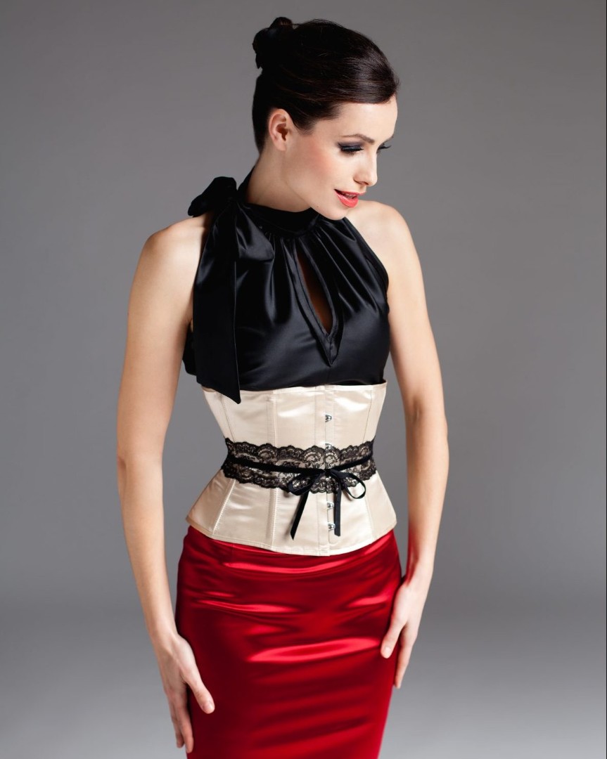 Taillenkorsett Korsett M410 /61 aus Satin shell mit schwarzer Taillenspitze und Schleife