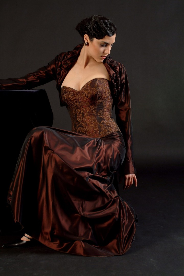 Vollbrustkorsett Reißverschlusskorsett Korsett M26 aus Jacquard „Tiffany“ braun in Größe 34