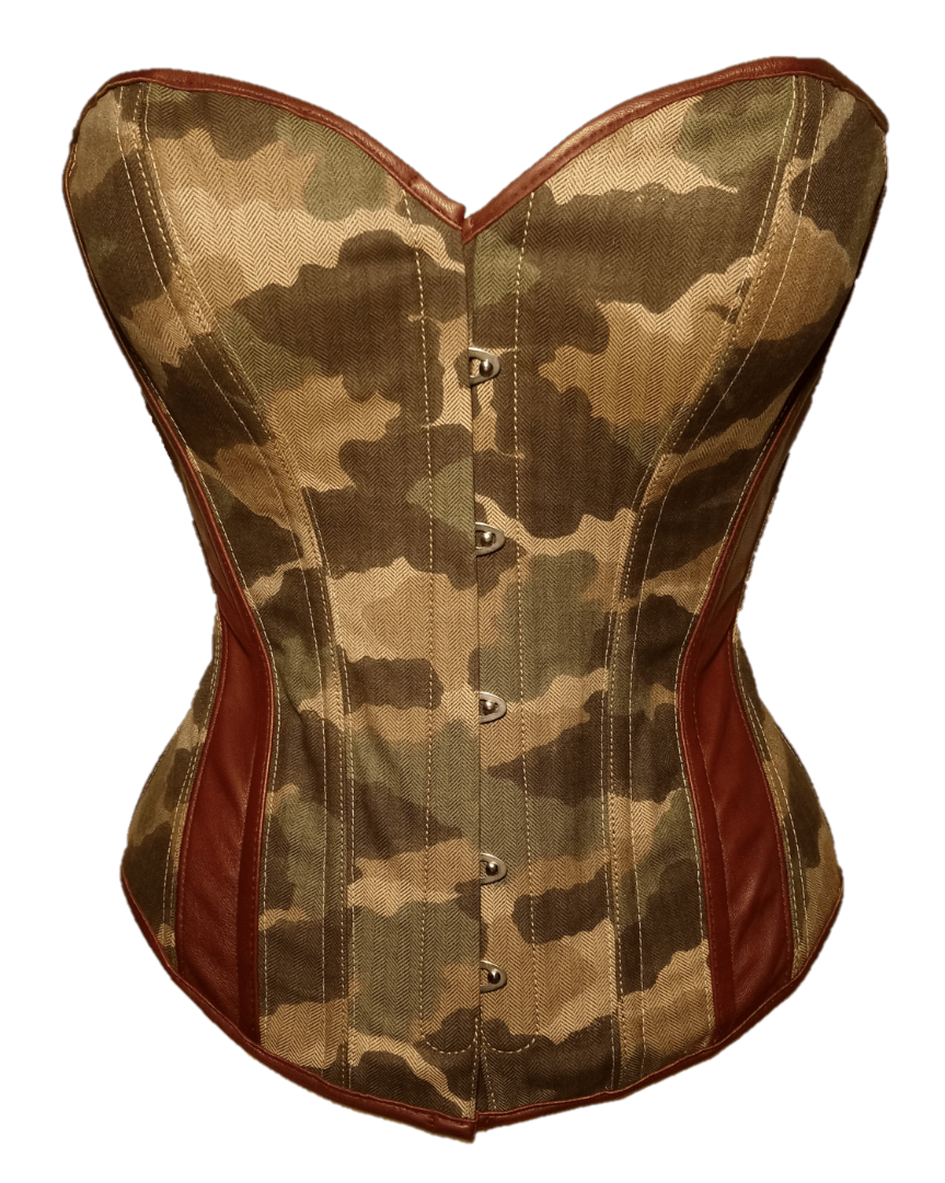 Abbildung: Korsett M2055 /4 aus Jeans „military“ grün mit Leder-Einsätzen