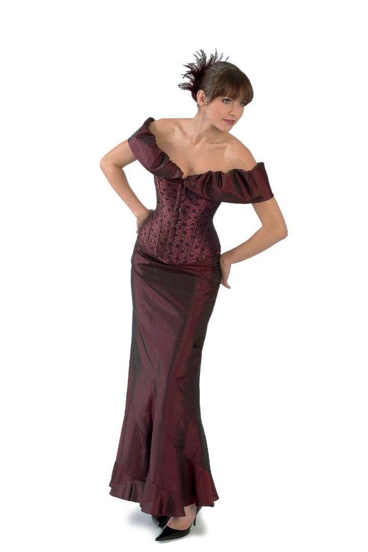 Abbildung: Rock R11 aus Taft weinrot, Korsett M26 aus Jacquard „Charme“ fuchsia
